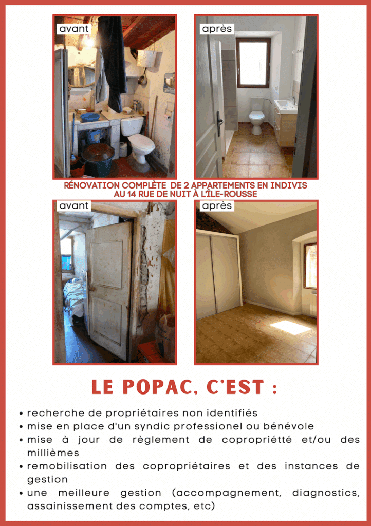 Le Popac est un dispositif qui permet d’accompagner les copropriétés (de tout types). Il intervient également sur leur gouvernance de la copropriété afin que les décisions nécessaires soient prises.
