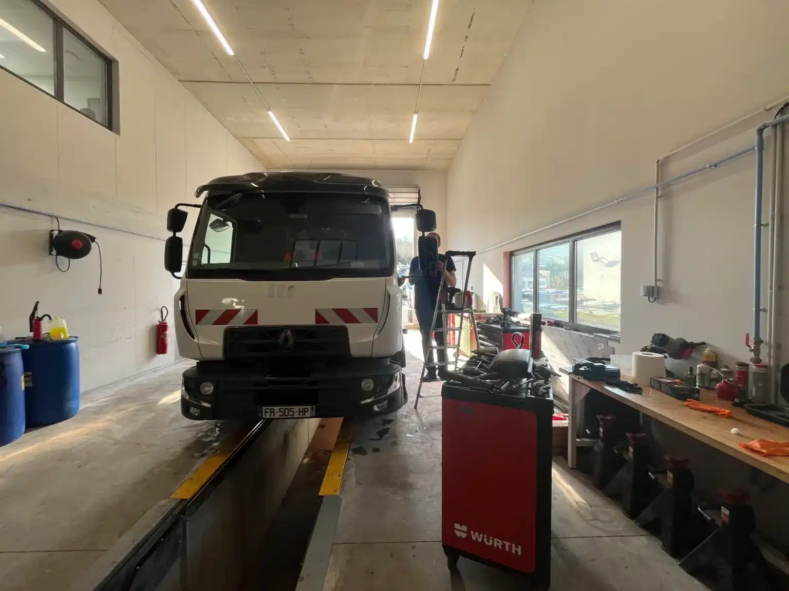 Le site comprend également un parking sécurisé pour les véhicules techniques, dont les poids lourds dédiés à la collecte des déchets. Un espace de maintenance permet de réaliser les petites réparations sur place, ce qui contribue à limiter les coûts de fonctionnement. Enfin, une station de lavage est installée pour assurer l’entretien régulier des véhicules.