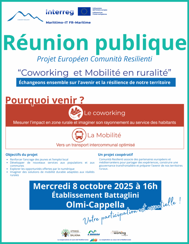 Il s’adresse en particulier aux communes de l’intérieur, souvent confrontées à des difficultés en matière d’accès aux services, de mobilité et d’attractivité. En Balagne, ce projet s’inscrit dans une stratégie de proximité et d’innovation locale, avec pour objectif de réduire les déséquilibres entre le littoral et les zones rurales.